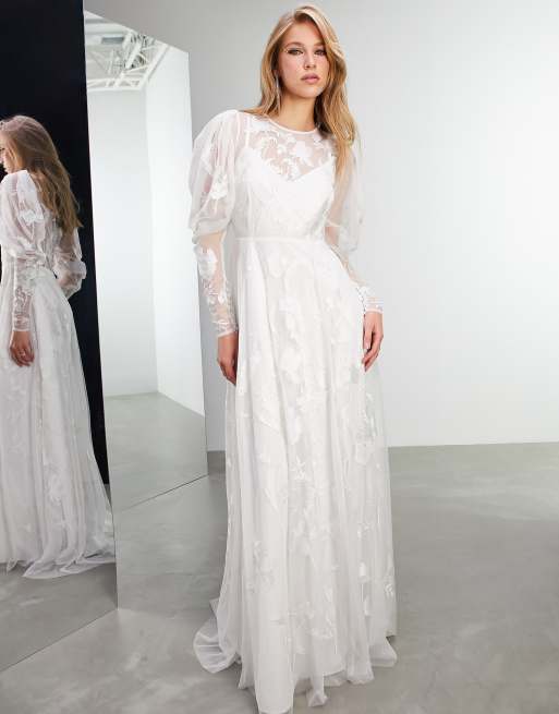 Asos Edition Eliza Floral Embroidered Long Sleeve Wedding Dress With Full Skirt Asos